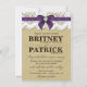 Plain white envelopes are included with paper invitations and will come to fit the invitation size you select. If you don’t need the envelopes, you may choose to not receive them by selecting the dropdown below "Envelopes" and choosing "None." If you’d like to have a design on your envelopes, you can browse all of these available envelopes to find the design that complements your Purple Rustic Vintage Burlap Wedding Invitations.
