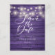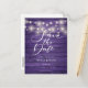 Purple Rustic Wood String Lights Save the Date Postcard
