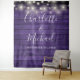 Featuring pretty string lights and a chic typography signature script on a purple wood panels background, this rustic wedding photo booth backdrop can be personalized with your names and special date. Designed by Thisisnotme©