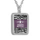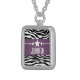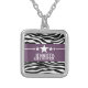 Trendy and modern Sassy Star Zebra Necklace featuring a chic black and white zebra print background and a bold purple border adorned with a fun star motif. This girly design may be customized with the personalized text of your choosing. Click "Customize It" to find more personalization options.