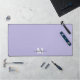 Add a personal and stylish touch to your workspace with this custom desk mat, perfect as an office accessory or oversized mouse pad. The design features a soft purple background with a white initial and black script name placed at the bottom center. You can move the monogram anywhere you'd like using the design tools to fit your personal layout. All colors, including the background and fonts, can be customized to match your style or office decor. A thoughtful gift for birthdays, Mother’s Day, or any special occasion, this simple and elegant mat adds a polished, personalized touch to any space.