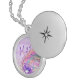 Beautiful Silver Round Locket, Featuring our Purple Sheet Music Design - Sheet Music Images Licensed and Copyrighted by Graphics Factory