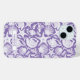 Customize this purple shell pattern iPhone 15 case with your your name in a trendy modern CAP font in purple on white. It's so modern and beachy!