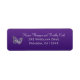 This purple return address label has a silver gray butterfly on it that matches the wedding invitation shown below.