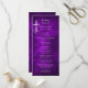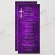 This elegant wedding program card features two silver hearts at the foot of a stunning silver cross at the upper left corner. The cross and heart images shine against a royal purple abstract background. There is plenty of room for your customized text, also in silver. If you need to change the font, size, location, or color of the text, use Customize It. The back of the invitation has the same purple background without the text or images.