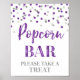 Popcorn bar sign for baby shower, bridal shower, birthday party or wedding in dark purple and silver confetti pattern. Please note glitter effect is photographic effect only.