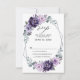 Purple Silver Floral Blooms Geometric Wedding RSVP Card