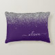 Purple Silver Glitter Girly Glam Monogram Accent Pillow