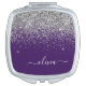 Purple Silver Glitter Girly Glam Monogram Compact Mirror