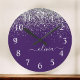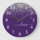Purple Silver Glitter Girly Glam Monogram Large Clock
