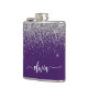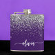 Silver and Purple Faux Sparkle Glitter Monogram Name and Initial Party Flask. This makes the perfect sweet 16 birthday, wedding, bridal shower, anniversary, baby shower or bachelorette party gift for someone that loves glam luxury and chic styles.