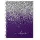 Purple and Silver Sparkle Glitter Script Monogram Name Spiral Notebook Planner. This makes the perfect sweet 16 birthday, wedding, bridal shower, anniversary, baby shower or bachelorette party gift for someone that loves glam luxury and chic styles.