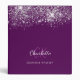 Purple silver glitter monogram school office 3 ring binder