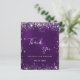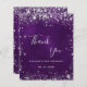 A feminine and elegant birthday thank you card. A purple, uneven colored background color. With faux silver glitter, sparkles. On front a large hand lettered script and the text: Thank You.
