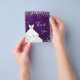 A feminine and elegant birthday thank you note. A purple, uneven colored background color. With faux silver glitter, sparkles and a white drerss. On front a large hand lettered script and the text: Thank You.