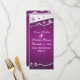 Purple, silver grey, white snowflake winter wedding menu card, featuring a waved band in silver gray with stars and purple elegant snowflakes on glowing gradient eggplant purple background. Modern and contemporary yet suitable for a traditional wedding. This elegant, classy and stylish design can be used for other special occasions such as engagements or anniversaries.. A perfect choice for winter, December or Christmas weddings.