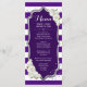 Menu Card. Classy purple silver design with faux glitter gold. Features stripes and white roses. Perfect for an elegant party.