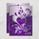 This romantic purple and silver gray scrolled wedding reply card has a purple PRINTED ribbon and a silver and puffy looking purple joined hearts on it that matches the wedding invitations shown below. It would be perfect for a purple and silver themed wedding. It would also be very nice for a 25th wedding anniversary party too. ***PLEASE NOTE there are no raised elements on this invitation. Everything is printed flat. The text and paper is all customizable. I would NOT use any of the colored papers (metallic champagne, gold, silver, felt, speckled) as they will ALL discolor the invitation. The linen paper will add a texture of thin lines that you may not want. The basic or recycled papers are a cheaper alternative if you are on a tighter budget. ***PLEASE NOTE that if you change the font or size of the font, it may alter how your invitation prints. It will print the way you see it on your monitor, so if you have alignment issues, or sizing problems, please contact me for help. I will not see your invitation once you order it, and Zazzle will NOT edit anything (typos, alignment, etc.). If you require assistance or would like any other matching items, please email your request to niteowlstudio@gmail.com. Existing matching items are shown below.