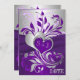 Purple Silver Scrolls, Hearts Wedding Invitation