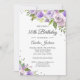 Purple Silver Sparkle Floral 30th Birthday Invite