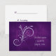 This response card matches the Purple Silver Swirl Monogram Wedding Invitations in our store. It has your custom text in silver gray on an abstract purple violet background. A pretty silver swirl is at the left. The back of the card is white with dark purple text, which makes it easy for your respondent to mark. Elegant!