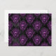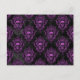 This Halloween design has purple skulls inside fancy frames on top of a charcoal grey background.