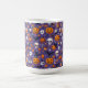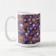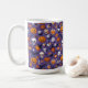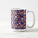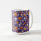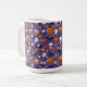 Bring the ultimate Halloween party atmosphere to your home with this vibrant mug! It features a rich, detailed seamless pattern bursting with cheerful pumpkins, spooky skulls, flying bats, witch hats, and fun potion bottles all set against a bold purple background.