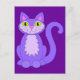 Purple Snaggletooth Kitty Cat Green Eyes Cartoon Postcard