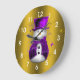 Purple Snowman on Gold Christmas Large Clock
