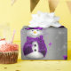 A cute and elegant silver and purple Christmas wrapping paper, featuring a pattern of adorable little snowmen dressed in purple velvet vests with matching top hats, all on a dark grey/silver background. They're also surrounded by silver stars and sparkling glitter (please note, glitter is part of the design only).