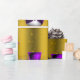 A cute and colorful gold Christmas wrapping paper featuring a pattern of little snowmen dressed in purple velvet top hats and vests, surrounded by gold stars to give your gift wrapping this holiday season a whimsical and stylish touch.