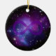 There is a semi-transparent purple infinity symbol against a purple space image. Galaxy Cluster MACS J0717 thanks to NASA and Hubble program.