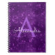 Purple Sparkle and Shimmer Monogram Notebook. This Purple Sparkle Shimmer Notebook can be customized to include your initial and first name. The Purple Sparkle Shimmer Notebook is perfect for school or planning a wedding.