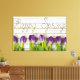 purple spring tulips on whitewashed wood canvas print