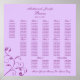 A wedding reception seating chart is an elegant way to direct your guests to their tables instead of using table place cards. You can also keep your seating chart as a momento of your wedding and the people who celebrated with you. This wedding seating chart features purple swirls and curls on a light lavender background. It is available in several different sizes with an optional frame. We also offer a rectangular version of this wedding reception seating chart that fits many standard frame sizes.