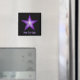 Modern design with a "shining" purple and white star on a black background. Fridge magnet with a customizable design for you to personalise with your own text, images and ideas. Please note that this is a printed image created using original photographs and digital techniques, it does not shine or contain real sparkles.