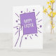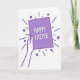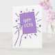 This card features a white background with a stylized hand outlined in purple, gently holding a rectangular card as if offering it to a close friend 🐰. The card is filled with a soft lavender tone and light shading that gives it a slight sense of depth. Centered on the card, the text reads “HAPPY EASTER” in raised-looking white letters that stand out clearly against the purple. Behind the card, thin purple rays spread outward like a celebratory burst, adding motion to the still scene. Small star shapes and a few round dots float among the rays, like little sparks that make the gesture feel a bit more affectionate 🐇. The limited purple palette keeps everything cohesive while the open white space makes the hand and message feel intimate and direct. The stars and dots cluster around the top and sides of the card, with the purple lines radiating outward in all directions.