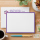 Purple Star of David envelopes suitable to use with HOLOCAUST REMEMBRANCE DAY cards and invitations. Design shows a tiled pattern of colored Star of David against a purple background on the inside, and the back top flap has another Star of David plus customizable address for you to replace with yours. On the front there is a purple border. Matching items available. Return address labels available separately.