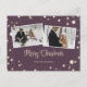 Purple Stars Snow Photo Merry Christmas Holiday Postcard