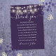 An elegant purple wedding celebration thank you reception card featuring pretty string lights. Personalized with your special thank you message set in stylish typography. A special keepsake thank you for your guests. Designed by Thisisnotme©