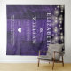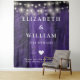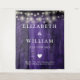 This purple string lights rustic wood boho barn wedding backdrop can be personalized with your information in chic typography. Designed by Thisisnotme©