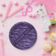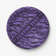 Striped camouflage paper plate in purple with editable text field. Personalize on the product page with any string of letters, numerals or text symbols.