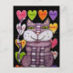 Purple Striped Cat Green Eyes Bright Candy Hearts Postcard
