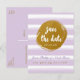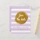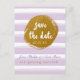 Purple Striped & Gold Foil Save The Date Postcard