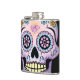 Purple Dia de los Muertos sugar skull with colorful flowers, diamond and heart.