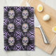 Purple Dia de los Muertos sugar skull with colorful flowers, diamond and heart.