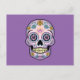Purple Dia de los Muertos sugar skull is so colorful with flowers, heart and diamond.