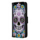 Purple Sugar Skull with Flowers iPhone Wallet Case