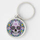 Purple Sugar Skull with Flowers Keychain