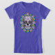 Purple sugar skull with heart and colorful flowers is a Dia de los Muertos design everyone will love!